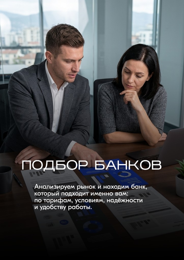 Анализируем ваш бизнес и подбираем банк с лучшими тарифами, кэшбэком и условиями обслуживания.